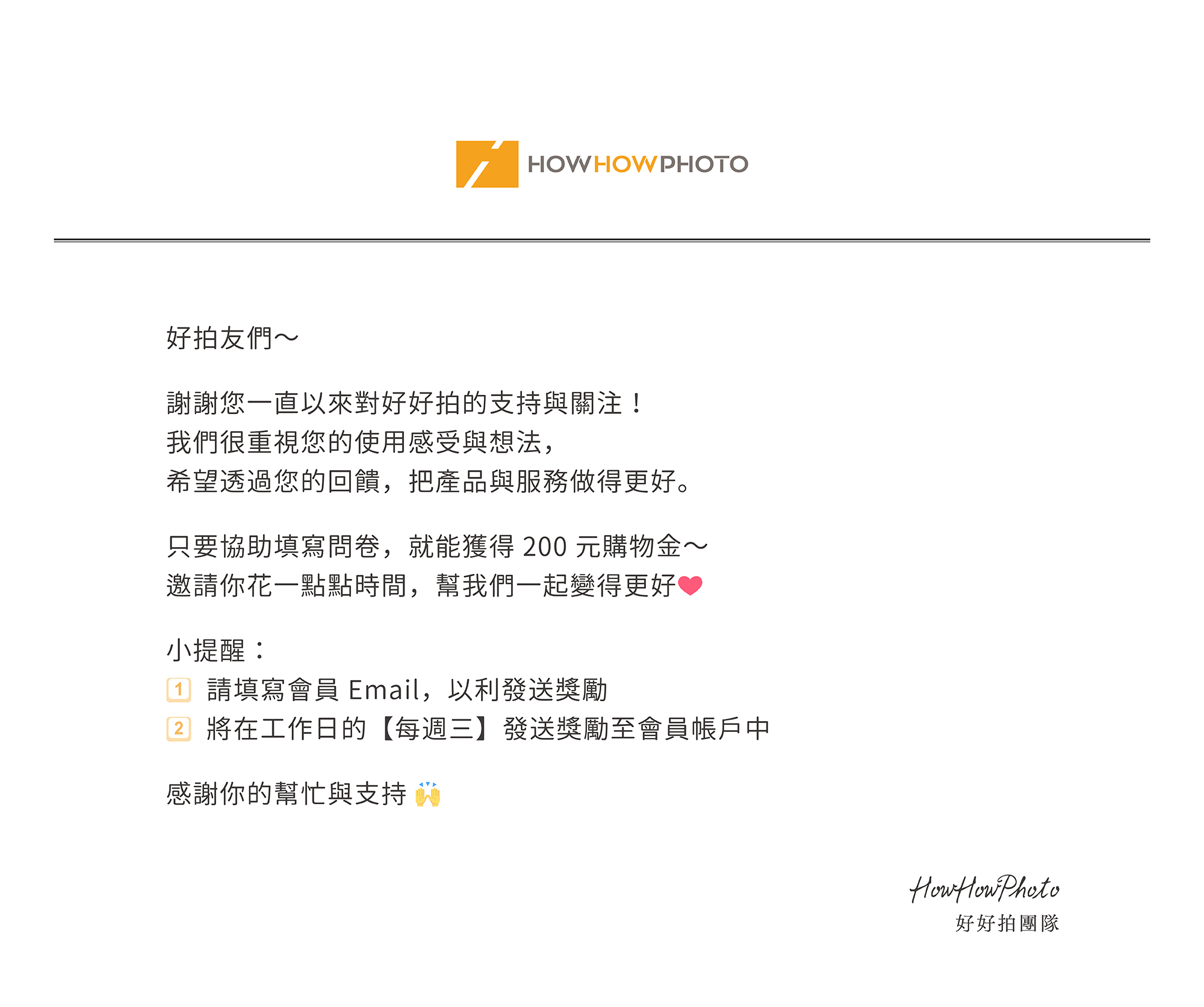 【好好拍月報】填問卷,現賺200元💰分享您眼中的【好好拍】是什麼樣子?